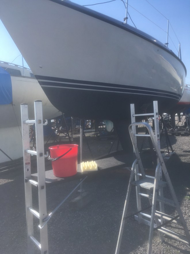 I dag, den 26 april, var det full sommar. Då passade jag på att tvätta skrovet.