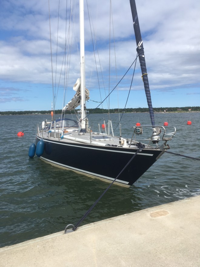 Inledningsvis var det en ganska frisk vind (kring 9 m/s) vi fick kryssa oss ut från Öregrund. Efter några timmar mojnade vinden sakta tills det bara återstod en sugande lång dyning. Så det fick bli motorgång ca 2 timmar av totalt 6 timmar.
