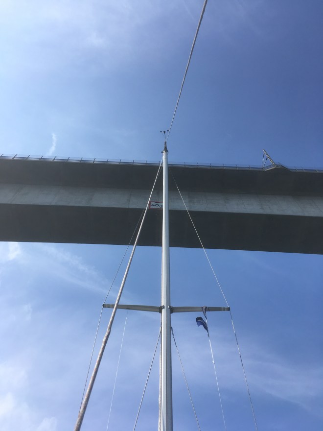 Vi klarade järnvägsbron med 27 meter luft mellan mast och bro!