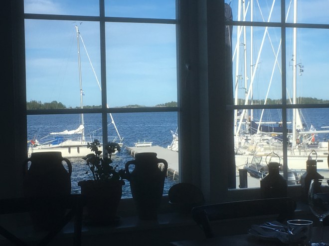 För fem fem år sedan brann värdshuset ner till grunden. I förra veckan (!) hade de premiäröppning. De hade inte inte ens hunnit lära sig kassasystemet. Det som var bra var att de bjöd på hamnavgiften 😃.