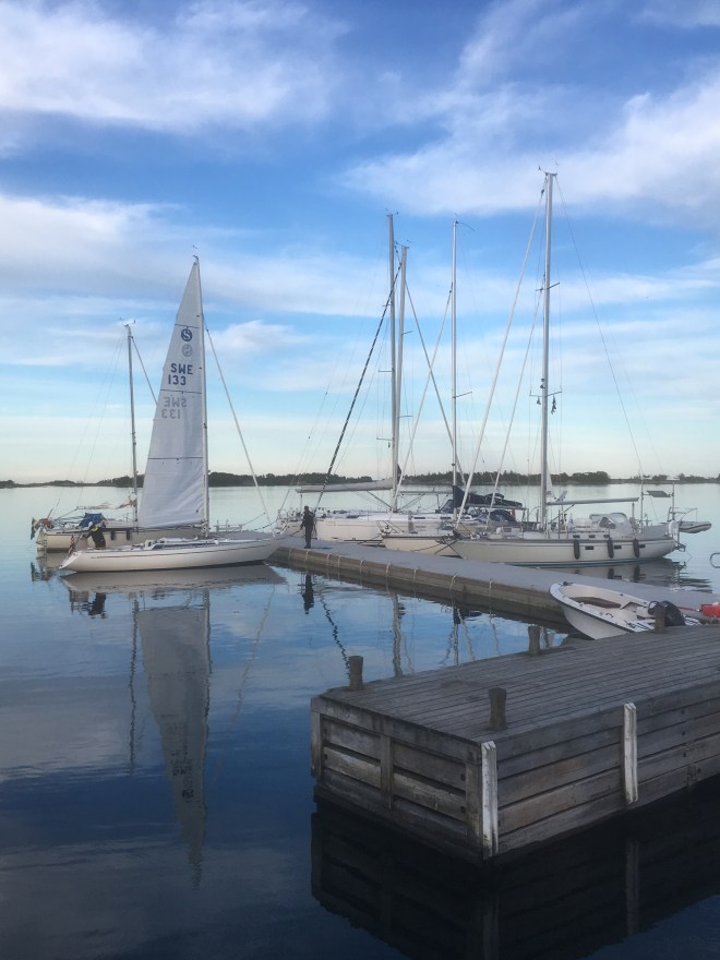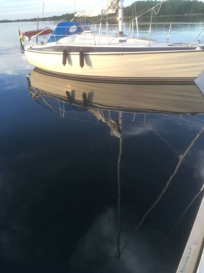 Det blev sovmorgon i morse. Efter en utsökt frukost på Kyrkogårdsön (Siaröfortet) så började vi ett mödosamt kryssande norrut. Vi kryssade utan stopp i 8 timmar. Med tiden blev vi proffs både på att göra slag och att hålla fart och höjd. Vinden höll sig stadigt på 4 m/s utan byar.