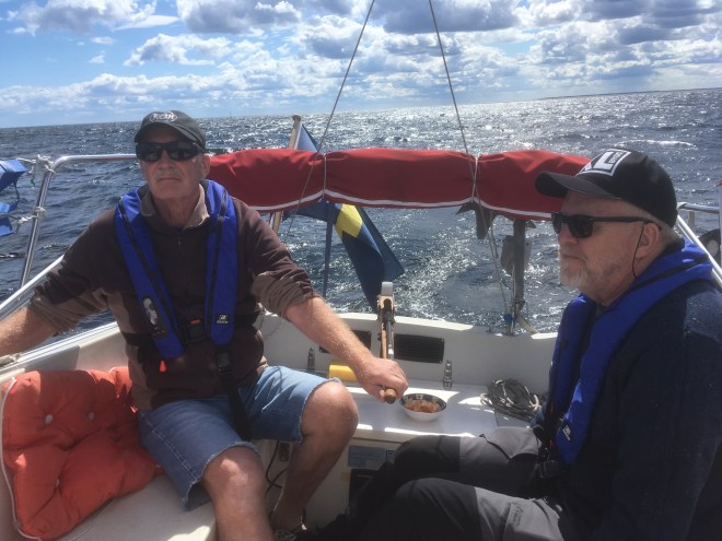 I morse kl 07:15 klev Malte och Hans-Åke ombord. Målet för dagen var Axmar brygga, en tur på nära 30 sjömil.
