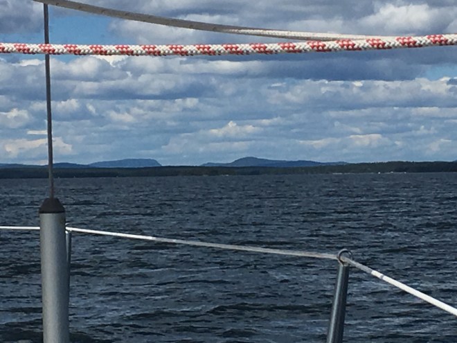Vi har i dag seglat i varierande vindar (väst, nord, ost och syd) i omväxlande sol och moln. Det var rackarns kyligt när solen gick i moln och vinden kom utifrån havet.