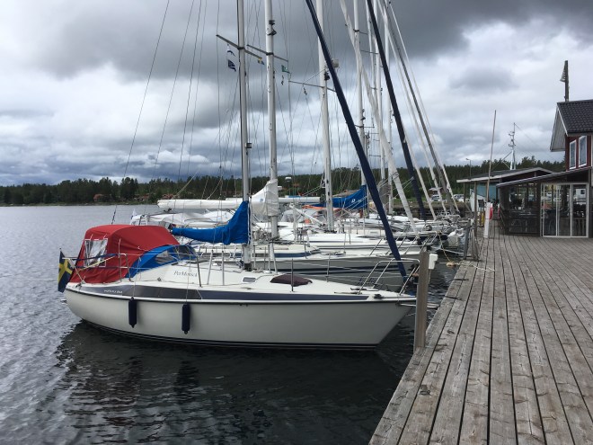 Efter 3 timmar och 45 minuter kom vi fram till den trevliga gästhamnen, där man knappt vaknat (09:15).