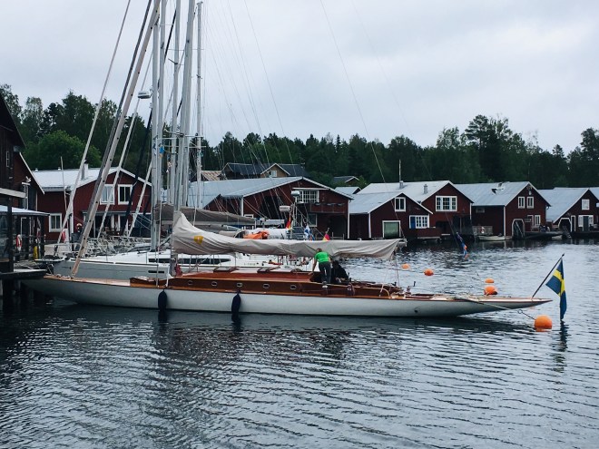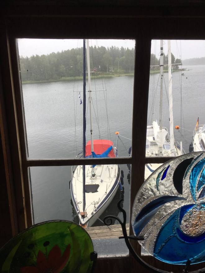 Att vi startade så tidigt berodde på att 1) det skulle komma kulingbyar och regn från kl 14 och 2) det gungade liite för mycket där vi låg.