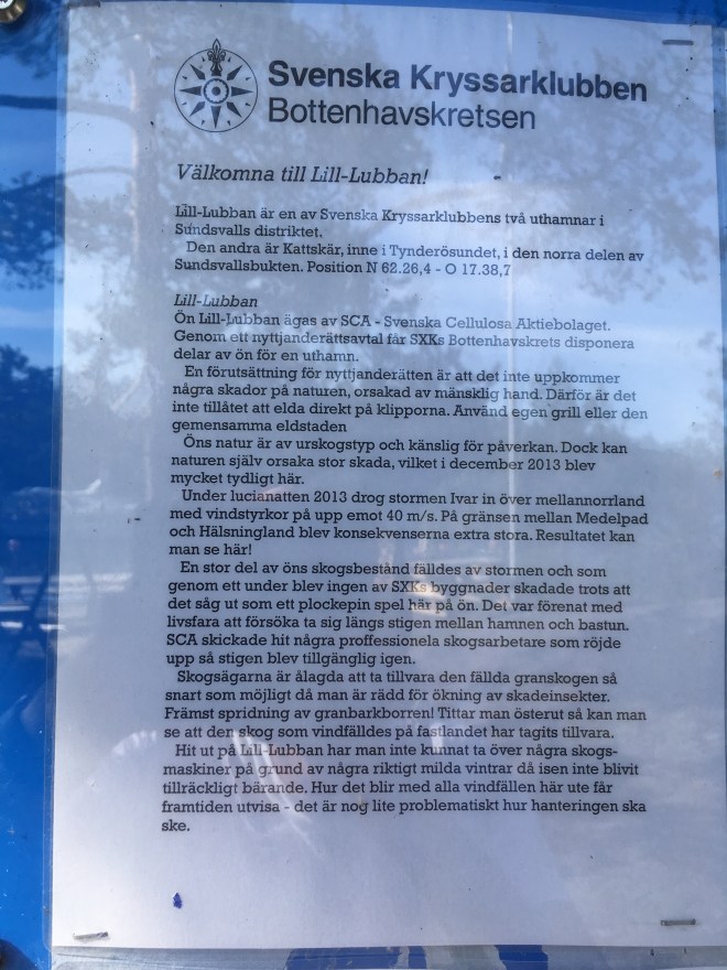 Den här hamnen är arrangerad av Kryssarklubbens Bottenhavskrets på en ö som ägs av SCA. Det finns inte så så många faciliteter men att kunna lägga till i en lugn vik vid en flytbrygga är värt hamnavgiften på 50 kr.