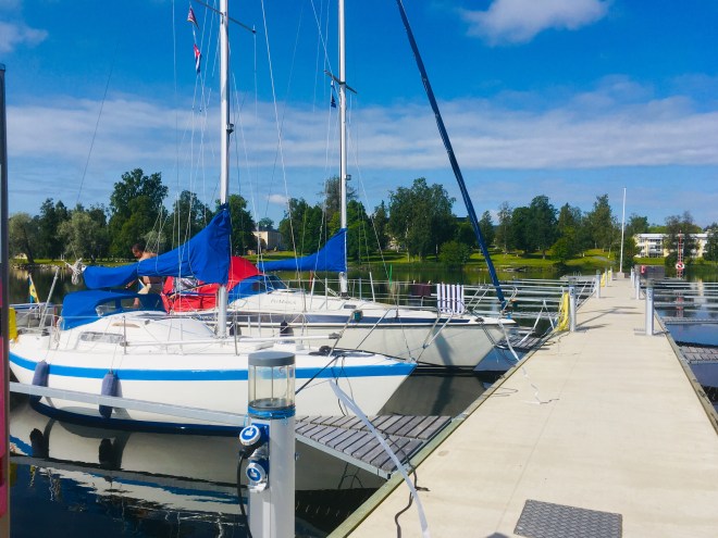 För första gången under nästan fyra veckors segling är jag störst båt i gästhamnen! En Maxi 77 ligger utmed bryggan. När vi kom låg det även en Maxi 68 på nocken. Min båt är en Maxi 84, för de som missat den detaljen.