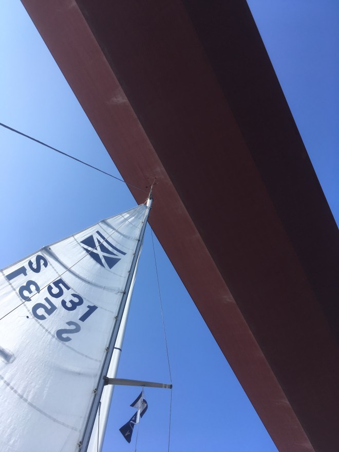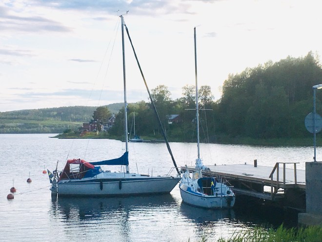 Och för första gången på en dryg vecka hade vi inte kryss och inte dyning. En härlig medvind 4 – 7 m/s tog oss snabbt från Härnösand till Hornö Brygga. Det är fortfarande kallt i vinden när inte solen värmer. Det är mössa och vantar som gäller när det är motvind.