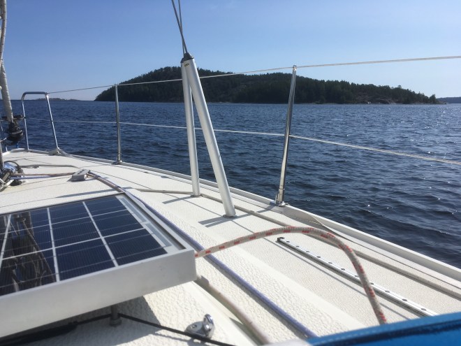 Vinden vände och de sista fyra sjömilen seglade vi i 5-6 knop. Kändes som det blev 10 grader kallare när det började blåsa från havet.