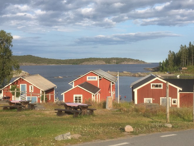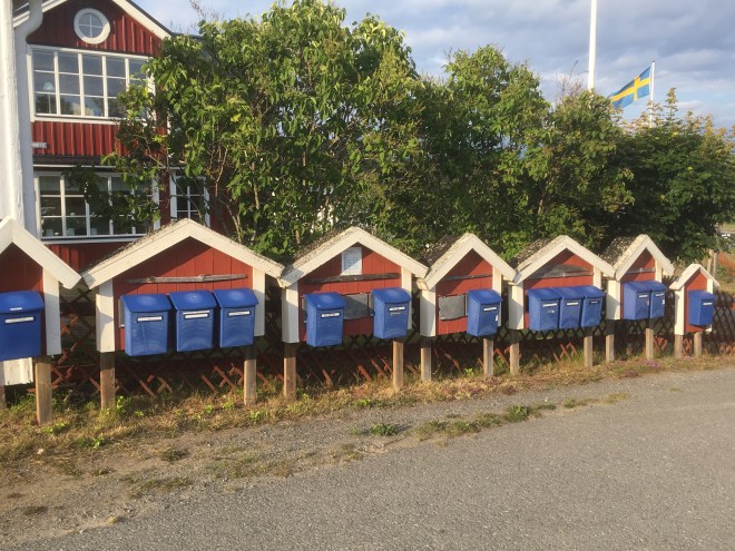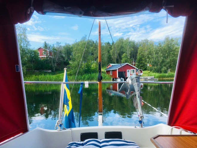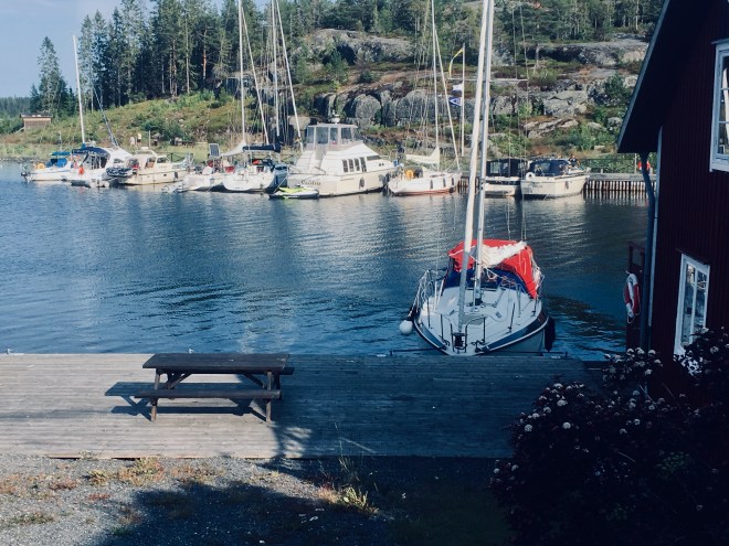 I Bönhamn parkerade vi intill en stor motorkryssare. De lade ut lite senare, så vi fick ha vår brygga för oss själva. (De båtar som ligger vid den långa bryggan mittemot har nog inte noterat att vinden ska vända kl 04.00 i natt och öka till uppåt 7 m/s).