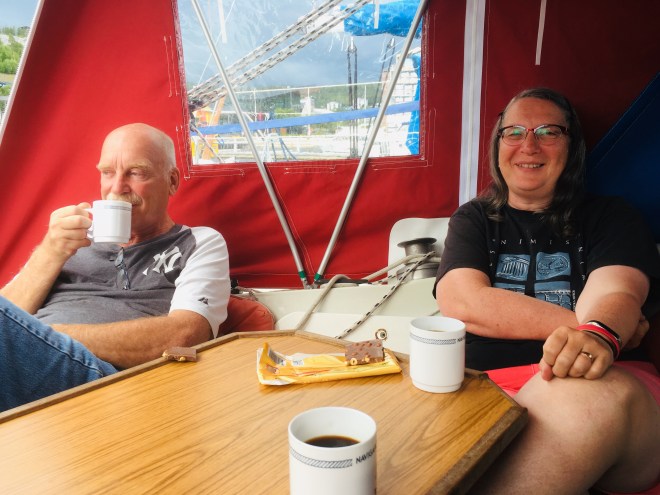Nu har vi nått vändpunkten på årets segling. Det firar vi med att stanna en extra dag här i Örnsköldsvik. Med på firandet är Malte, som i går anlände med buss efter fem timmars resa från Gävle.