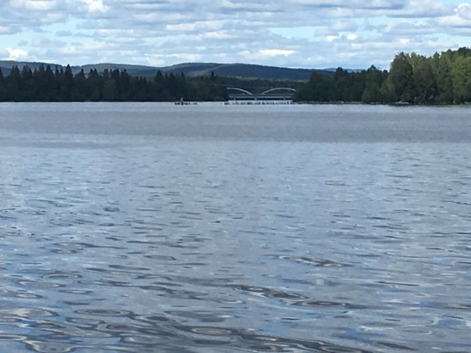 På bilden ser man E4-bron som går över en av vattendragen i Indalsälvens delta