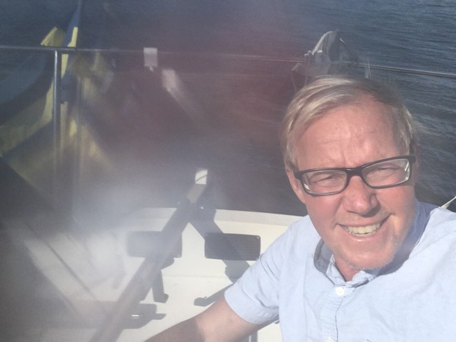 Christer B var med både på den första etappen från Oxelösund till Stockholm samt etappen från Mariehamn till Norrtälje. Man kan lugnt säga att etapp 1 var rena semesterseglingen jämfört med den tuffa överfarten på Ålands hav. Vi tog vägen genom Södertälje med mellanlandning på Birka. Sen vidare ut från Mälaren genom Stockholm. Eva-Charlotte skulle ha varit med på samma etapper men jobb respektive olycklig skada satte stopp för detta. Men till midsommarfirandet i Stockholm respektive ett dygn i Mariehamn tog hon sig ändå! Det var ju kul. Monica tog samma tåg till Stockholm, firade midsommar och seglade med till Vaxholm och klev av i Åkersberga.