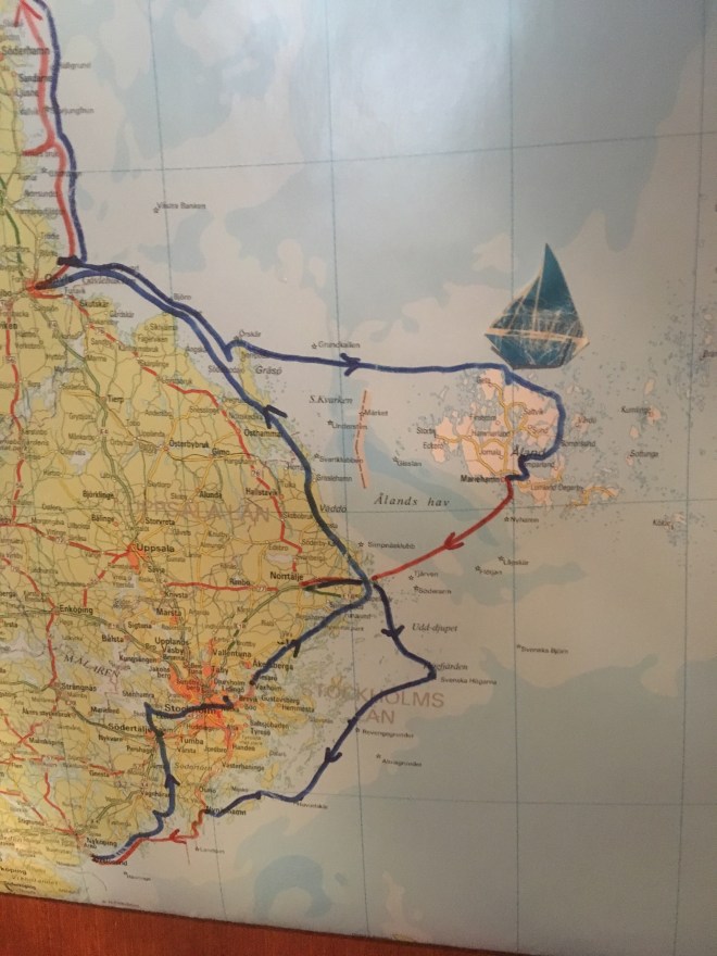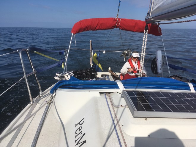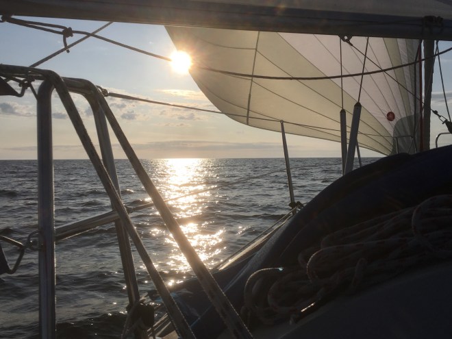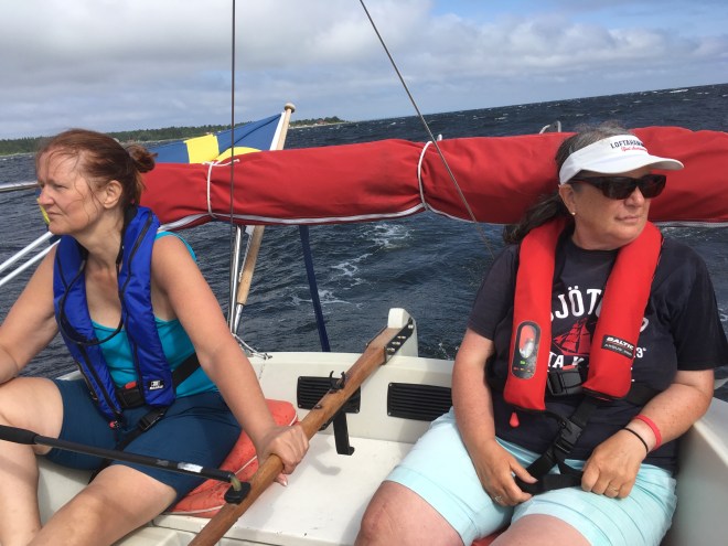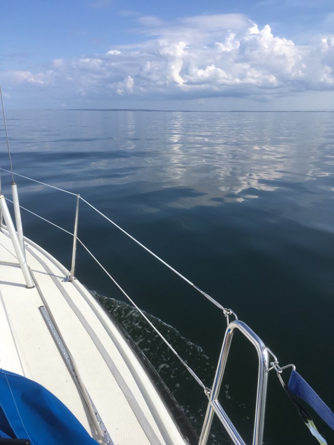 Det blev 3 timmar segling och 10 timmar motor (bitvis med segel uppe för stabilisering). Vi hade totalt stiltje under flera timmar.