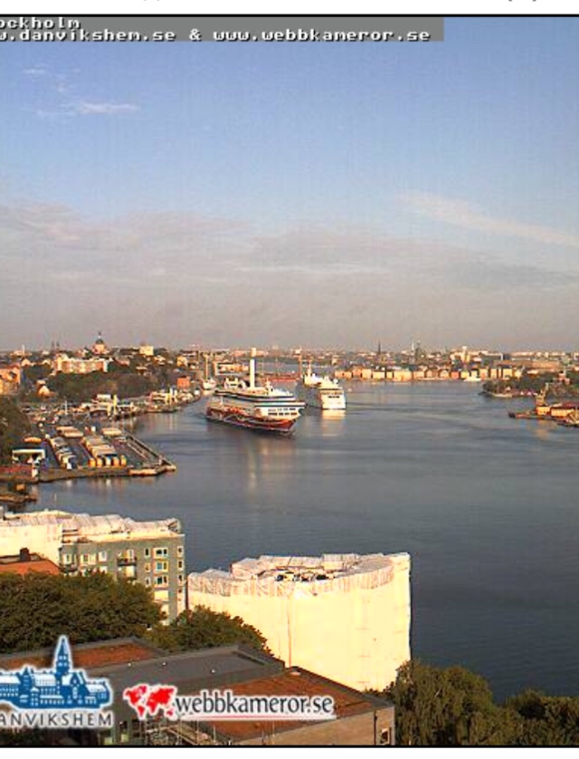På bilden ser vi t.ex. hur Viking Grace lägger ut från kaj i Stockholm. Ombord finns Christer B (som ska mönstra på som gast här i Mariehamn om några timmar) och Eva-Charlotte B (som har bokat en BNB här ombord, när hon ändå är i Mariehamn). Man får öka förstoringen rejält om man ska se dem på övre soldäck…