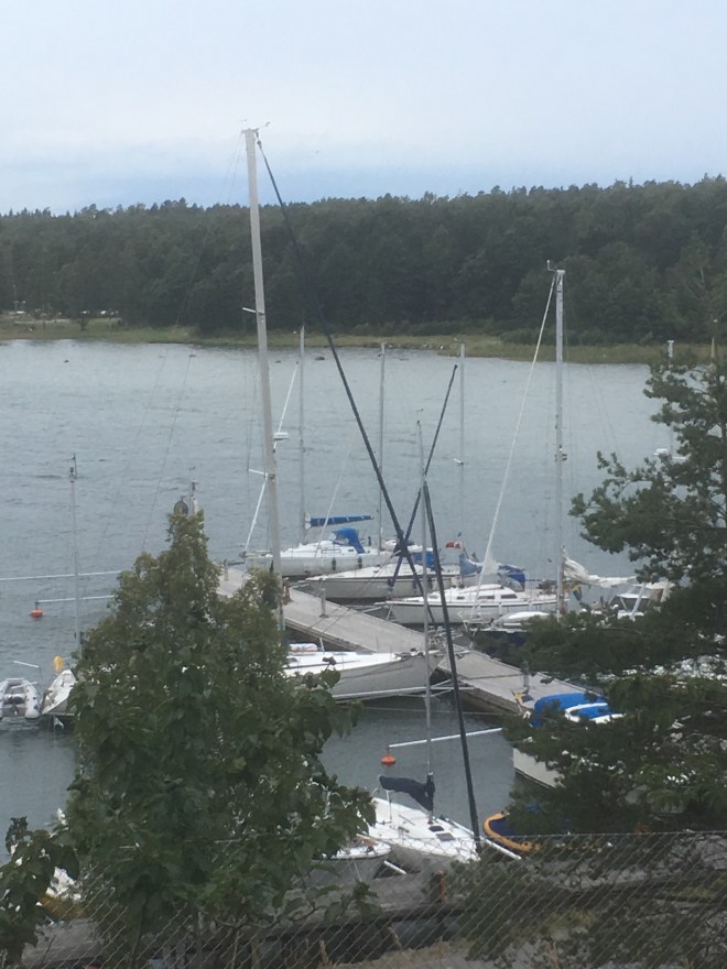 Fyra båtar gav sig av på förmiddagen – i hård vind och ösregn. Tuffa typer. Och fem nya båtar har kommit in, varav två stora tyska segelbåtar, en finsk och två svenska.