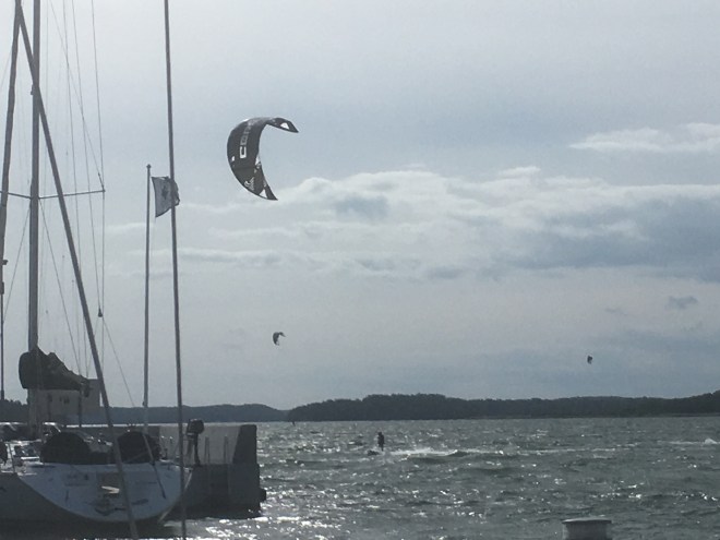 Kitesurfare i mängd mötte vid infarten till gästhamnen