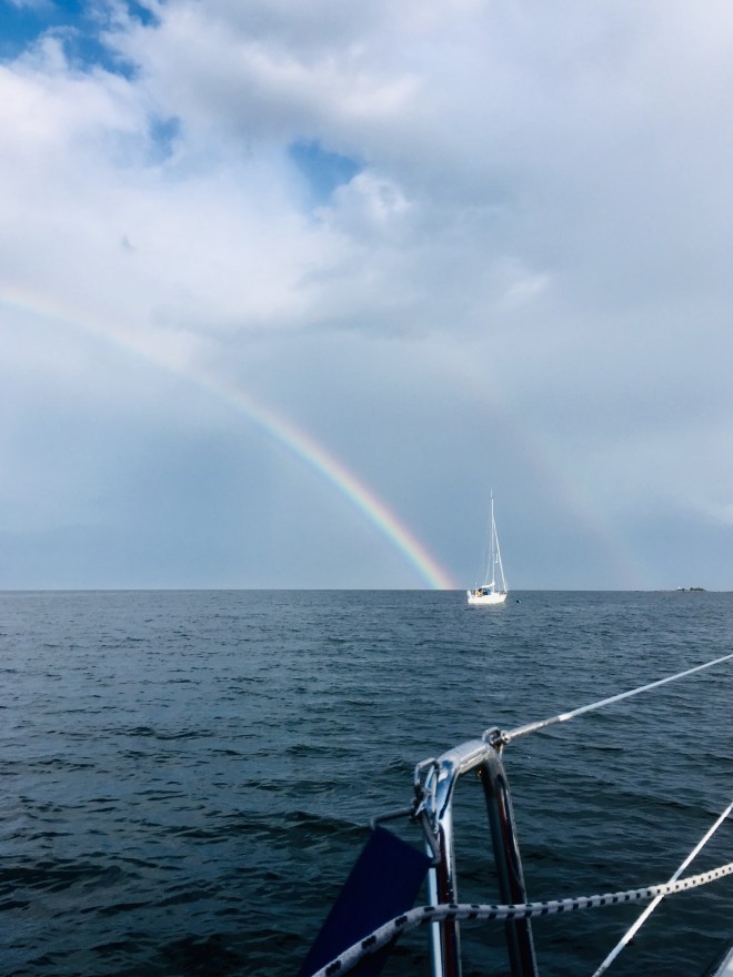 Dagens etapp var på 55 sjömil varav 50 på öppet hav. Vi kunde släppa bojen vid Björn och segla iväg utan att starta motorn.