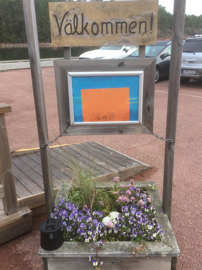 Det var förvånande stor aktivitet i hamnen -när kiosken hade öppet mellan 17 och 21. Tydligen populärt bland lokalbefolkningen att åka till hamnen och ta en fika. Och man åkte med bil eller båt från näraliggande öar.