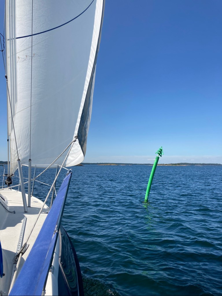 När vi girade styrbord in Rågödjupet med kurs Loftahammar fick vi plattläns. Då blev det riktigt varmt! 🥵
