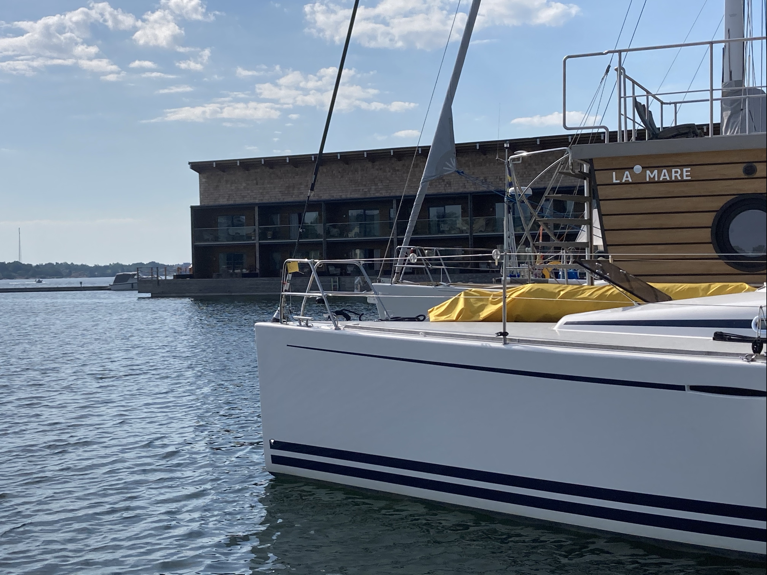 Det är många båtar i den nya gästhamnen. Ett fåtal av dessa är mindre än 36 fot. Glädjande nog ligger det ytterligare en Maxi 84 i hamnen.
