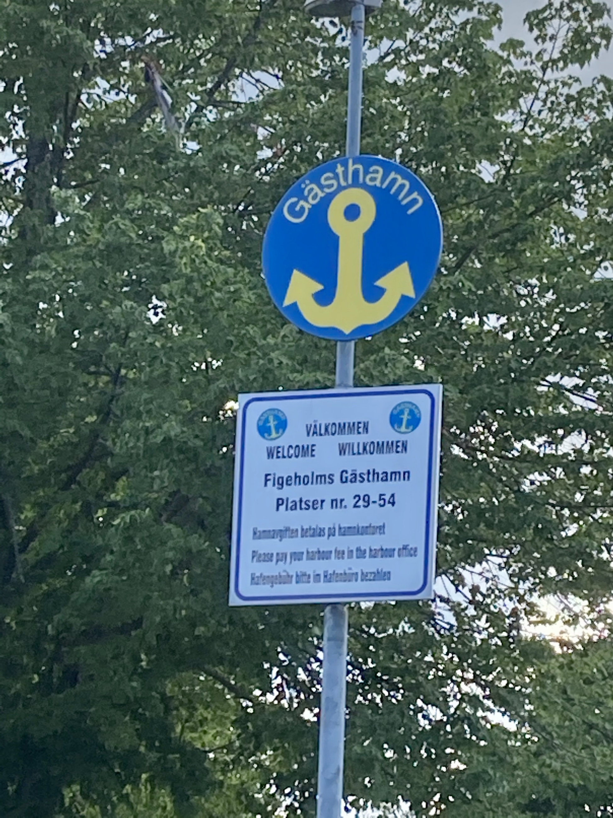 Figeholm är sedan länge en favorit bland gästhamnarna på ostkusten. Jag saknar de pensionerade seglarna som tidigare varit hamnkaptener. Troligen har man gjort en Corona-anpassning och anställt ungdomar att ta emot och hänvisa båtarna. Nu var det lite tafatt, men det blir säkert bättre längre fram på säsongen…