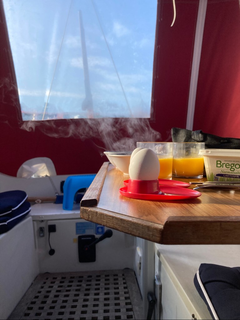 SMHI lovar att regnet ska sluta vid lunchtid i morgon. Vi ligger därför kvar i hamnen innan vi lägger ut för att segla de ca 18 sjömilen till Kåseberga (vid Ales stenar).