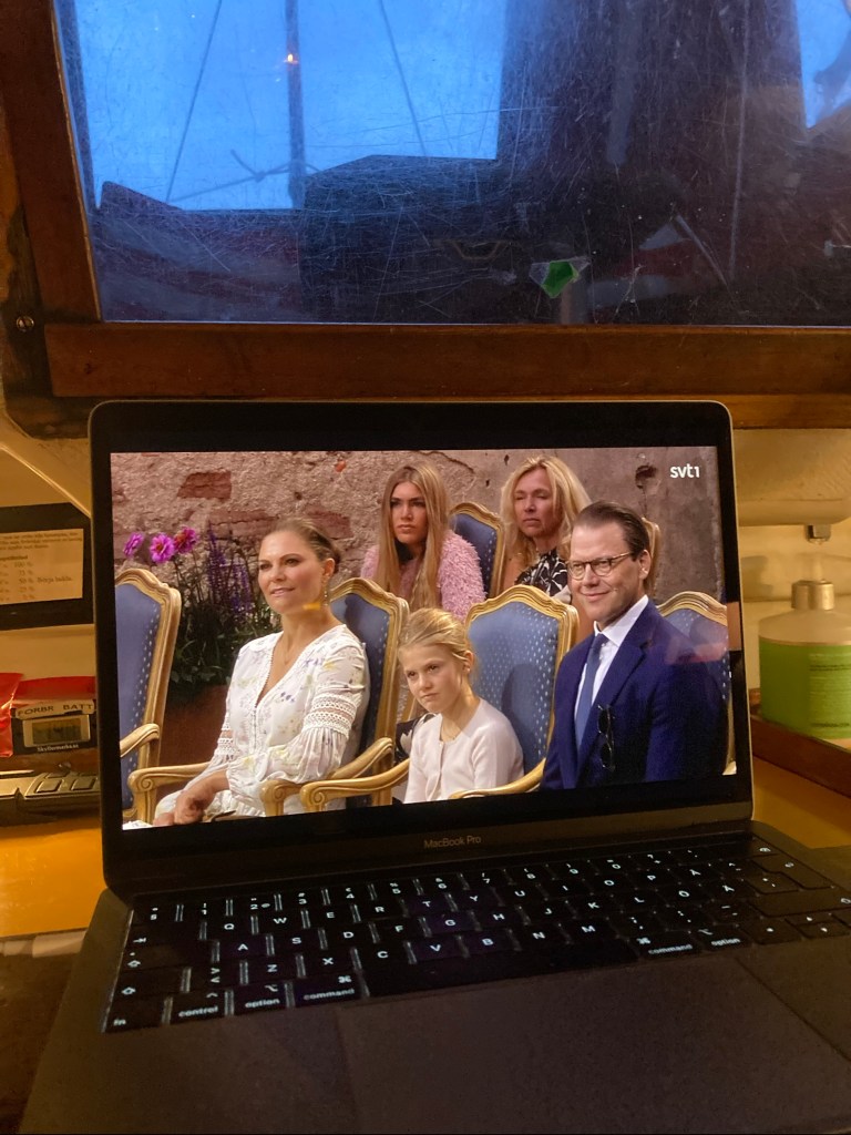 För första gången på över tre veckor tittar vi på TV. Armand Duplantis får Victoriapriset av kronprinsessan.