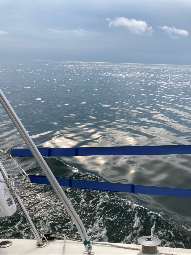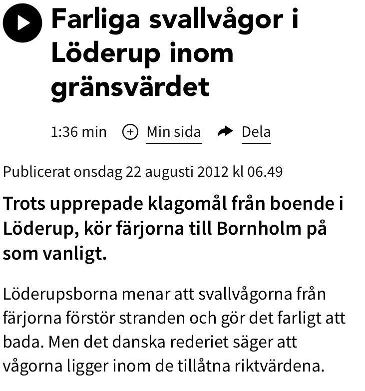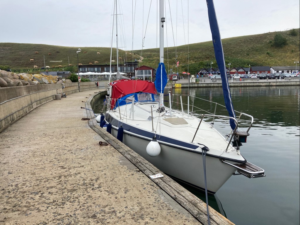 Tillbaka till båten började det gå in kraftig dyning i hamnen. Det var kraftiga vågor i rörelse. Efter 20-30 minuter slutade det gunga. Efter ett tag kom vi på att det är snabbfärjorna mellan Rönne och Ystad som genererar de enorma vågorna.