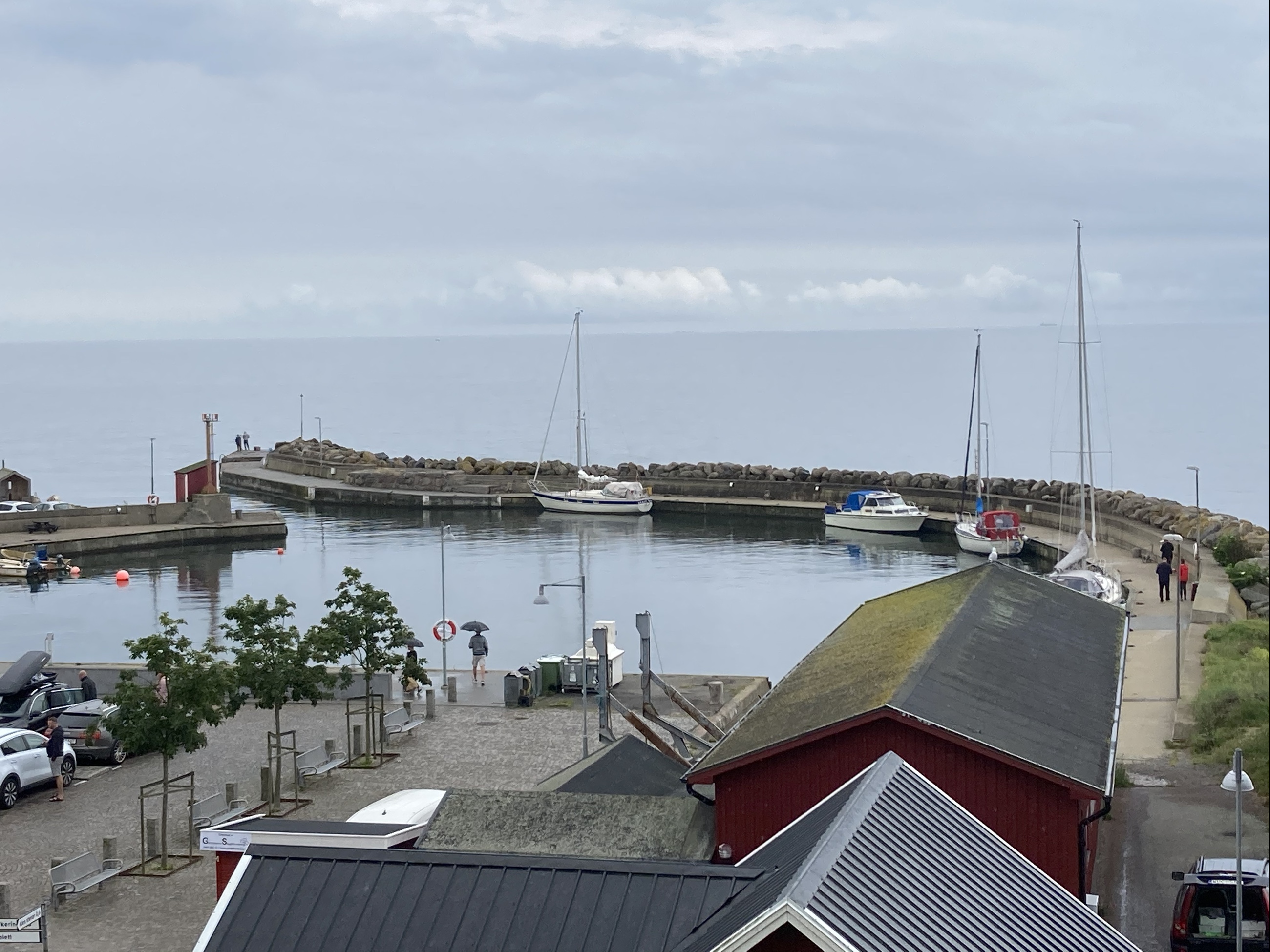 Nu väntar vi bara på att regnet ska göra en paus, så vi kan ta en promenad i hamnen.