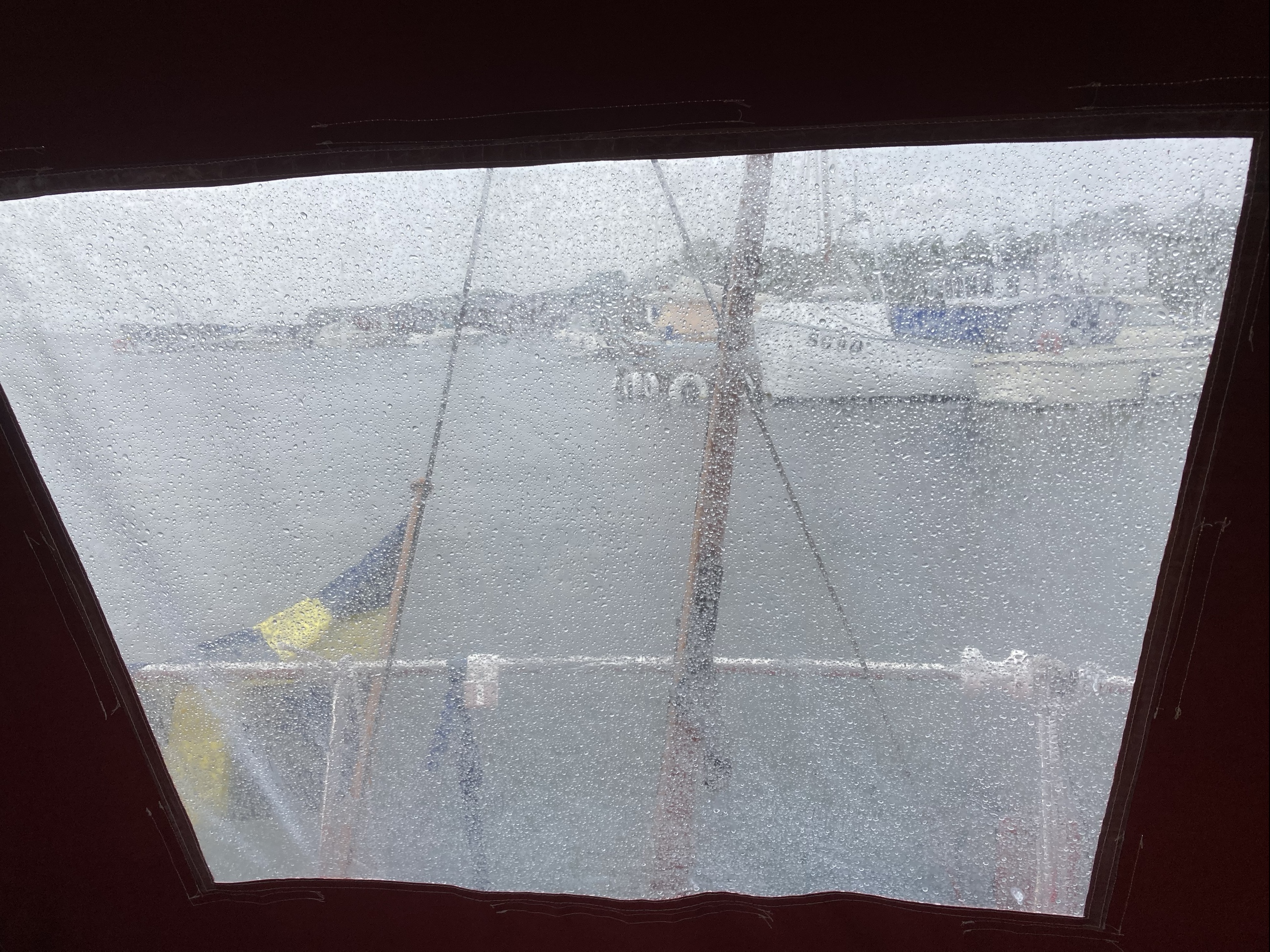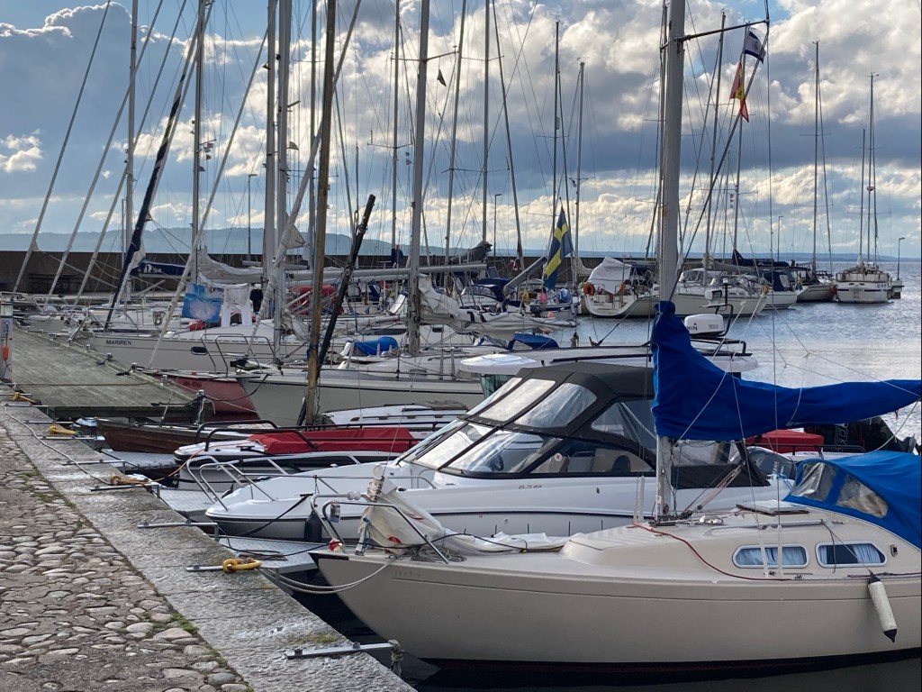 Nu är vi 7 båtar som ligger för ankar på Hanö. Alla är vi lite spända inför natten. Anledningen är att vinden ska vrida från SV till NV klockan 3 i natt. Samtidigt ska vinden öka till 8 i byarna. Vindriktningen betyder att vågorna kommer att gå rakt in mellan vågbrytaren och in i aktern på våra båtar. Rapport om hur det gick kommer i morgon…