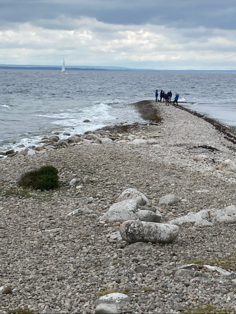 Vi tog en promenad till den s.k. Bönsäcken. Ett stenrev som ändrar sig beroende på vindriktning. Består av miljontals äggformade stenar.