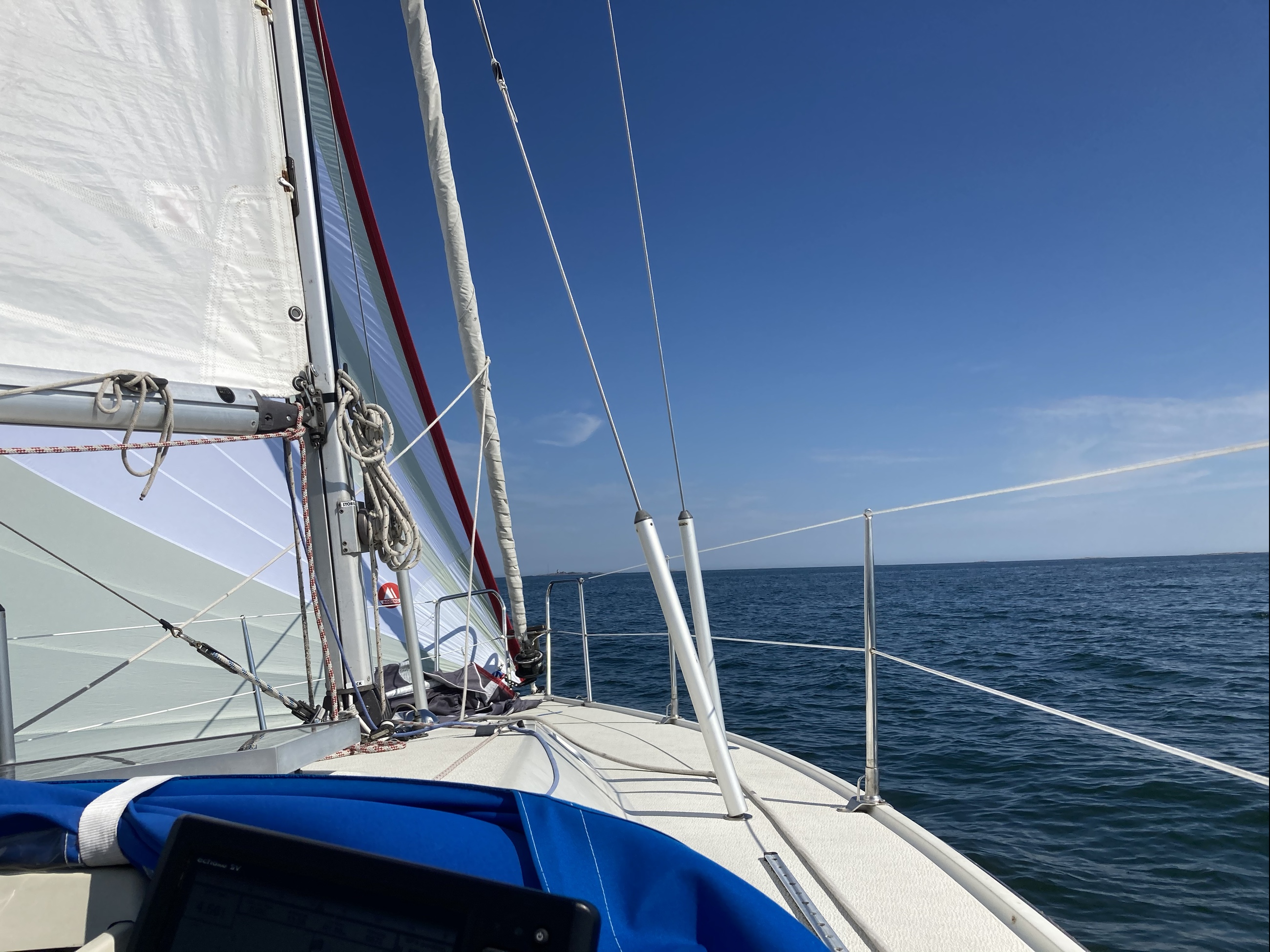 Efter en snabb frukost seglade vi iväg kl 11. Första biten genom Lundarnas labyrinter med grynnor gick vi dock med motor.