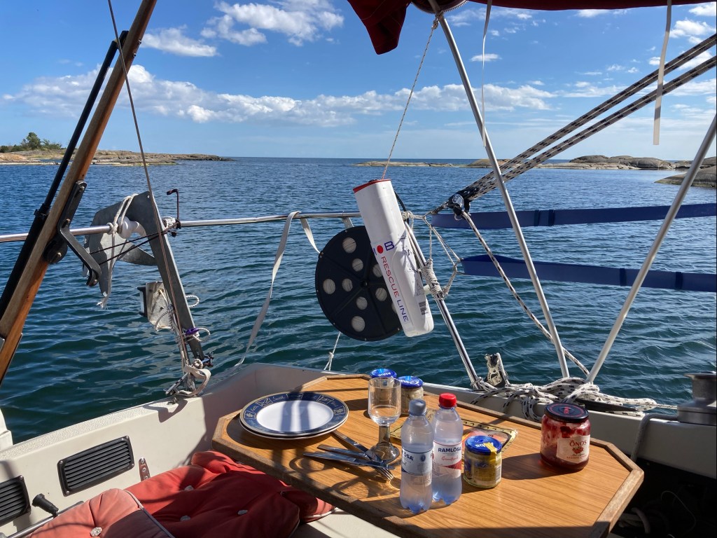 Riktigt så häftigt hade vi det inte i dag när vi seglade hem över Bråviken, men det blåste som mest 13 m/s och gick en lång gammal dyning som växte närmare Oxelösund.