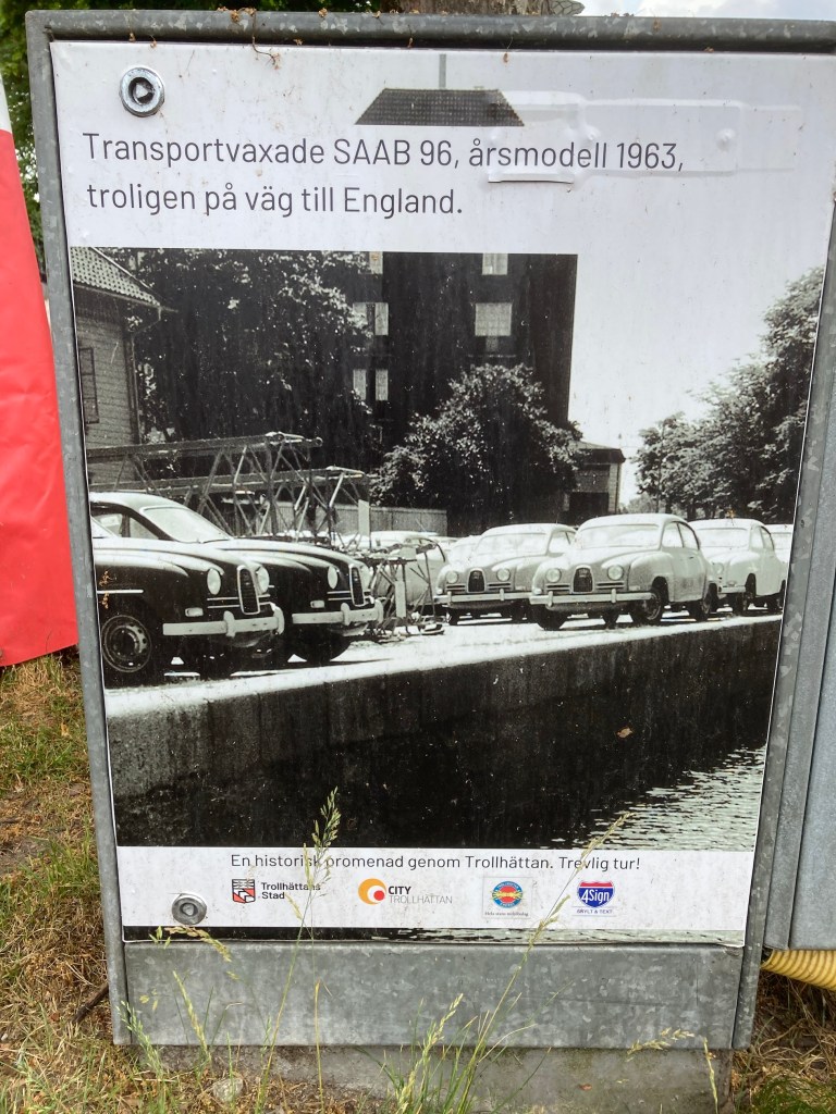 I Trollhättan ser man ovanligt många SAAB-bilar (som i Nyköping!). Här låg den stora fabriken och härifrån skeppades mängder med bilar till väldens alla hörn.