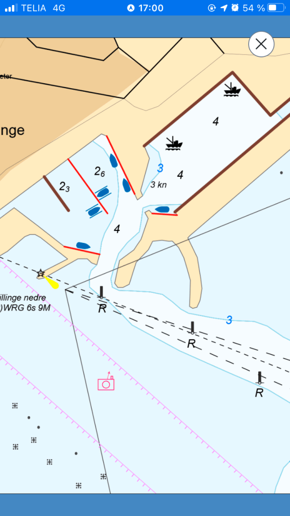 Vid ca 08:30 gjorde jag en medveten avvikelse från utlagd kurs. Jag valde att inte gå in i skärgården vid Hasselöbron utan via huvudinloppet till Karlskrona, vid Kungsholmsfort. Jag vann två saker; båten gick fortare och jag riskerade inte att behöva vänta en timme på broöppning. (Öppning bara 1 gg i timmen). Omvägen var bara 2 sjömil, så det var enkel matematik.