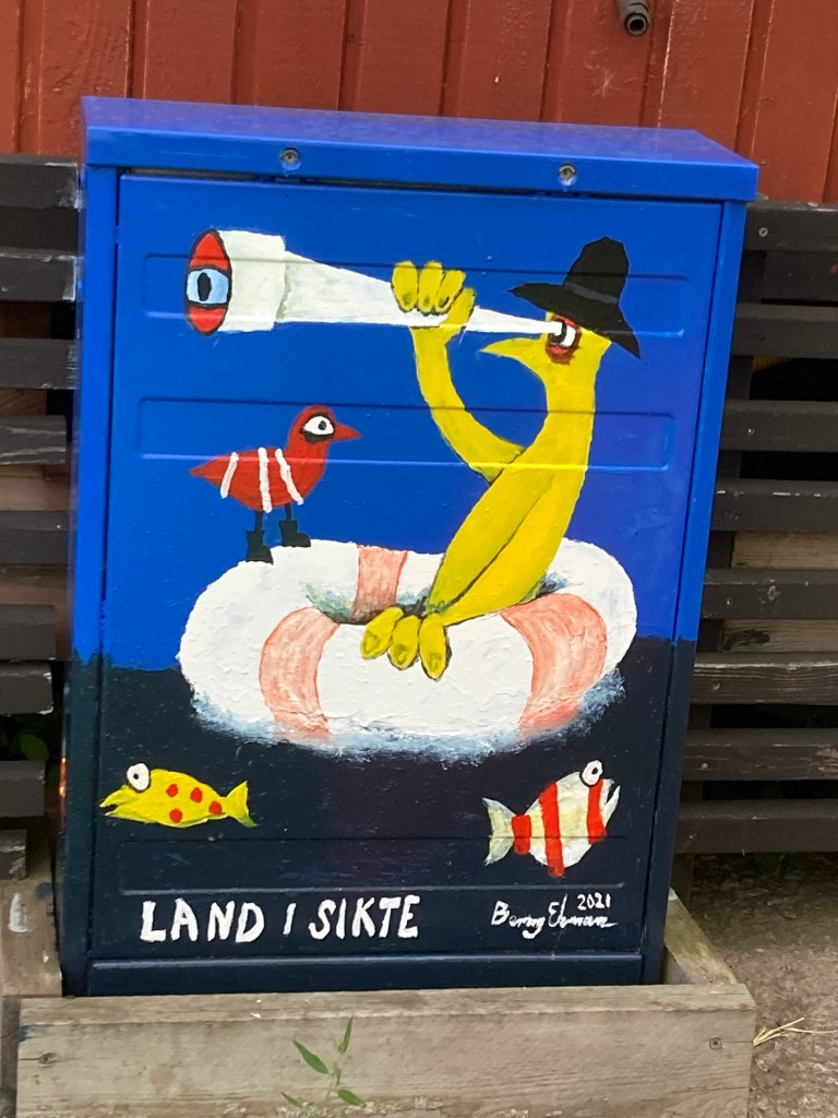 Senare på eftermiddagen blev vi inbjudna till våra trevliga båtgrannar Charlie och Maud på en pratstund över ett glas vin. Ja, dvs inbjuda till bryggsittning med full Coronasäkerhet. Deras hemmahamn är Stora Rör på Öland. Nu hade de varit upp till Västervik och vänt på några dagars segling. Tidigare under sommaren hade de seglat med goda vänner från Motala till Söderköping. Tyvärr började det ösregna innan vi pratat färdigt – men det var mycket trevligt ändå!