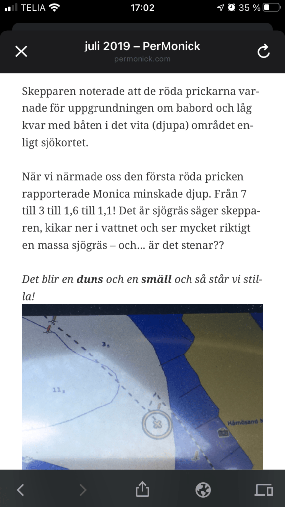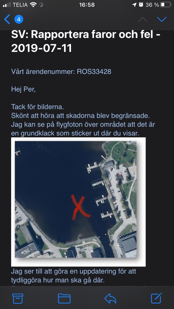 Sent om sider har jag gjort en anmälan om fel i sjökortet som vi upptäckte den 11 juli 2019 (kolla i bloggen på det datumet).