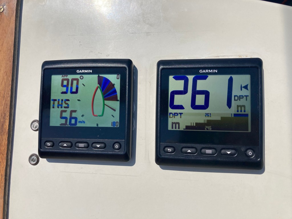 Vi fick en lång segling i 5 m/s. Som vanligt varmt och strålande sol.