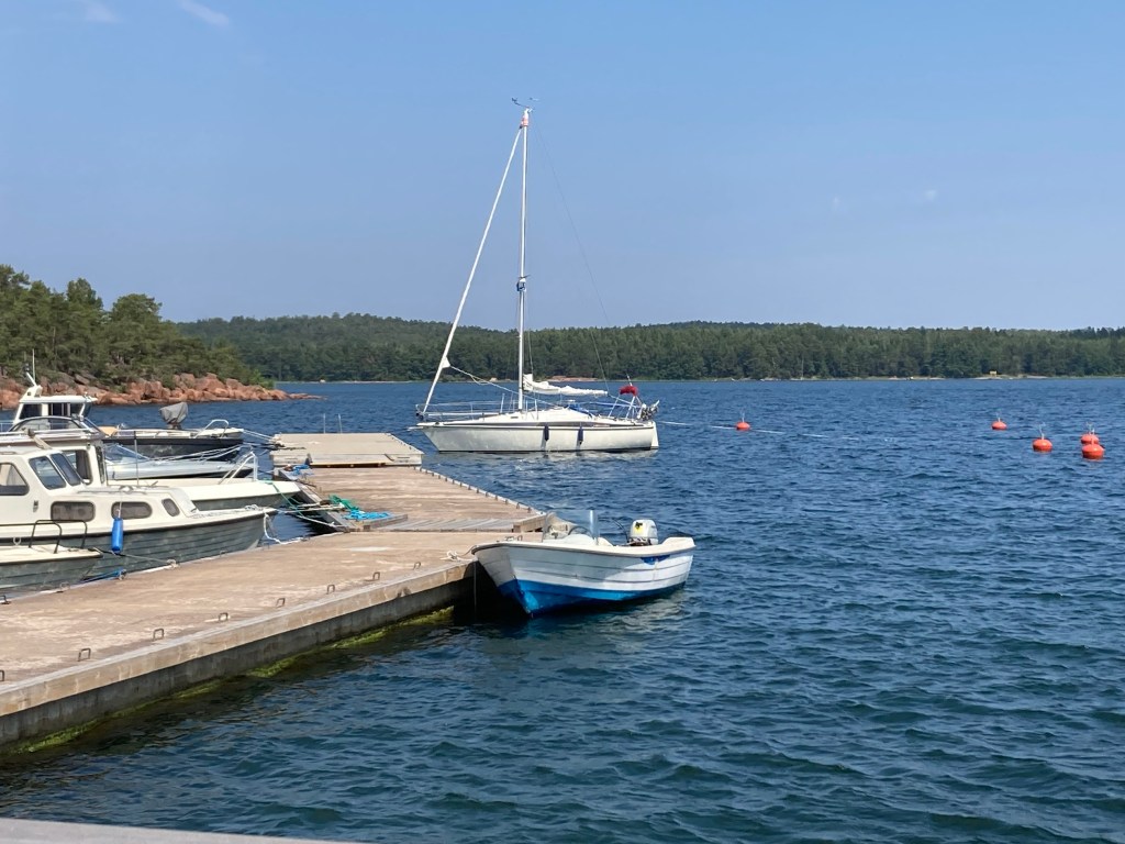 På eftermiddagen åt vi en god lunch på den lokala skärgårdskrogen. Mätta och glada tog vi en siesta i värmen (+ 30 i ruffen).