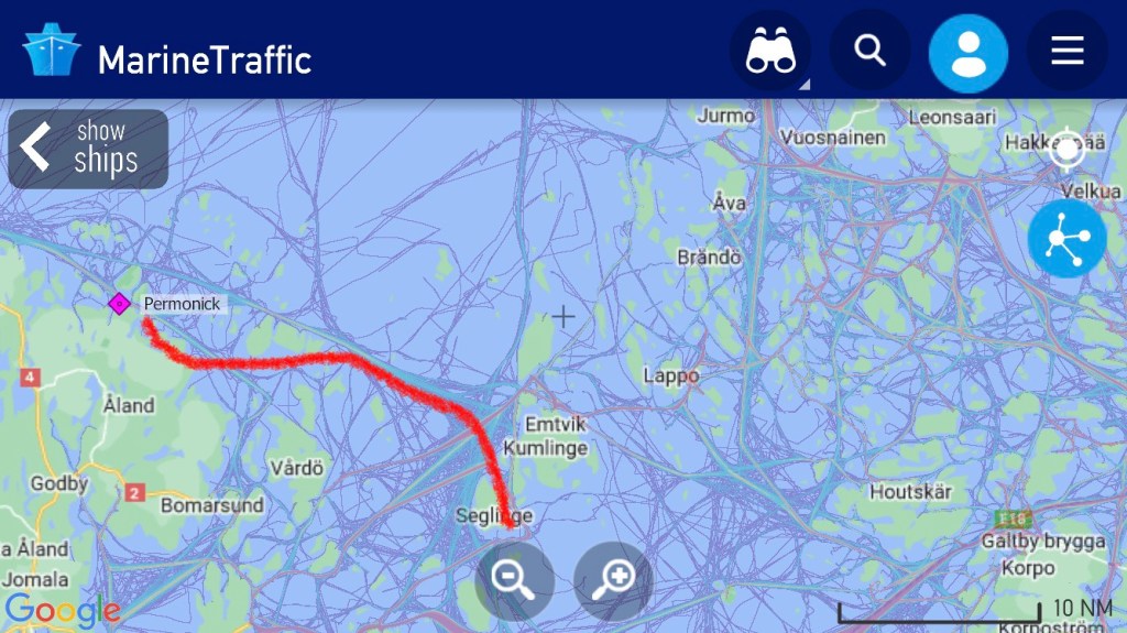 Dagens etapp var 15,9 sjömil. Från starten i Oxelösund har vi tagit oss 247,3 sjömil.