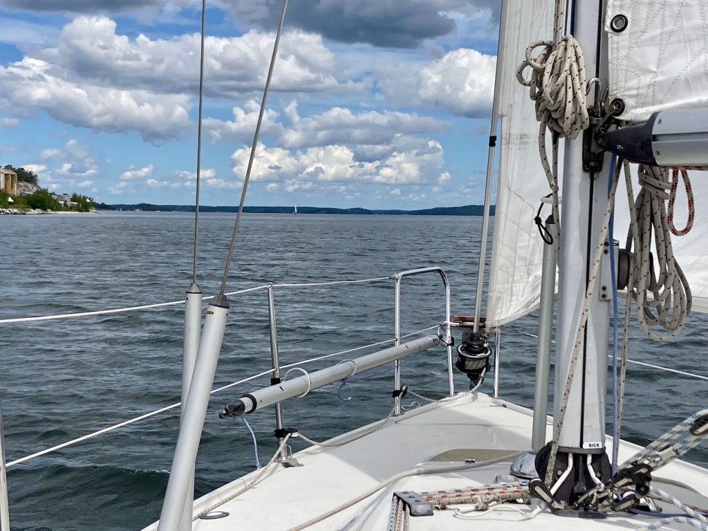 Hela seglingen tog 6,5 timmar – fast vi körde motor de sista två sjömilen.