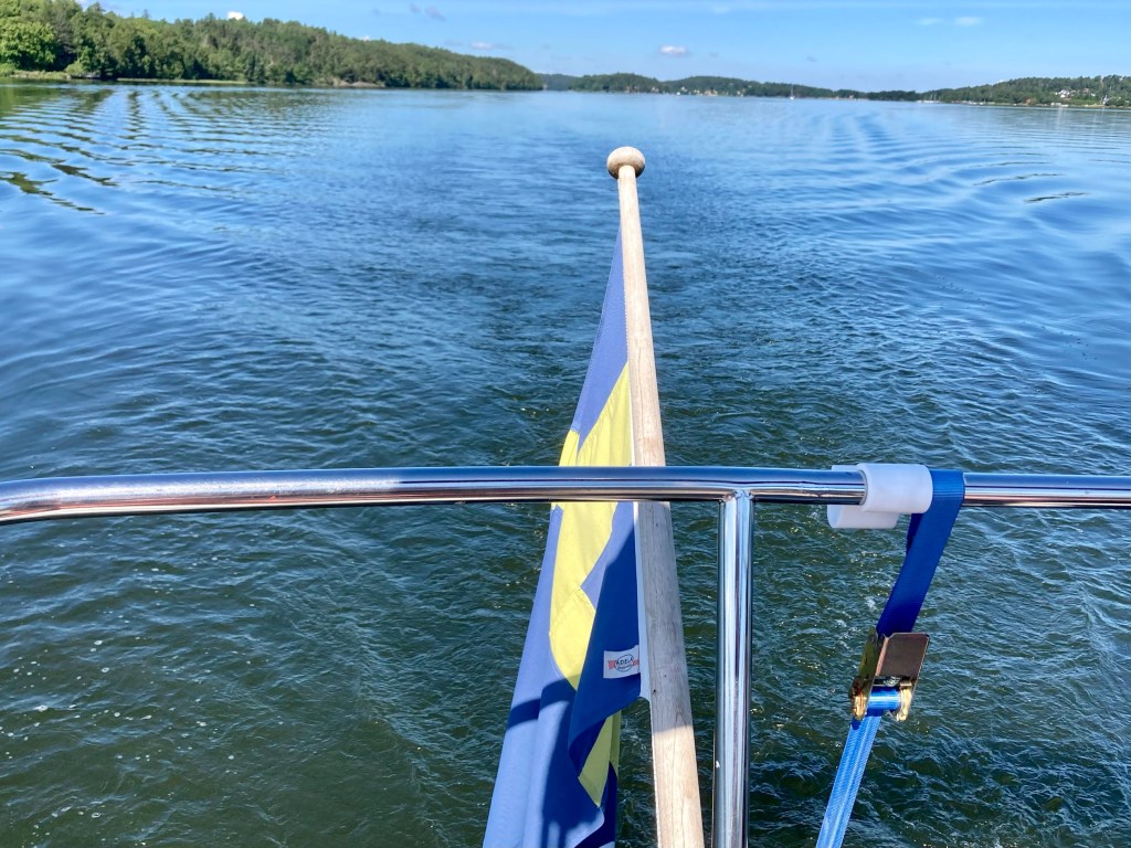 Så vi körde i ”Göta-kanalfart” = 5 knop, hela vägen från Birka till Stockholm. Det är dessutom motorns ekonomifart, vilket ju är viktigt i dessa tider.