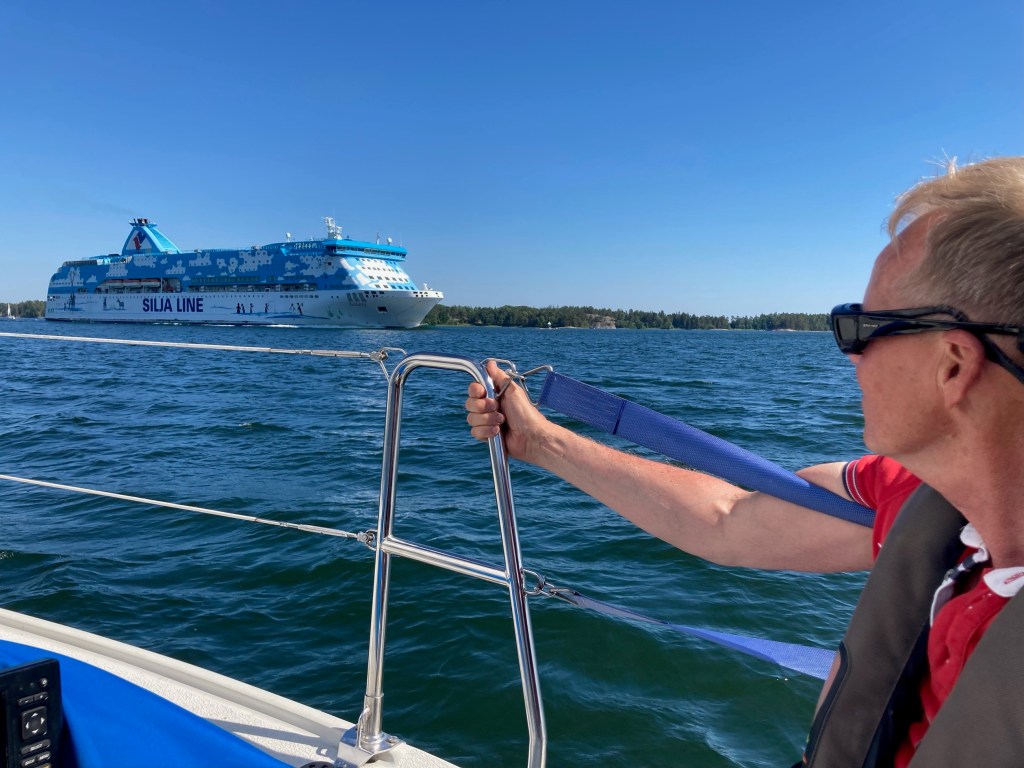Vi fick köra motor i en dryg timme innan trafiken med allehanda båtar lugnade ner sig och vinden stabiliserade sig.