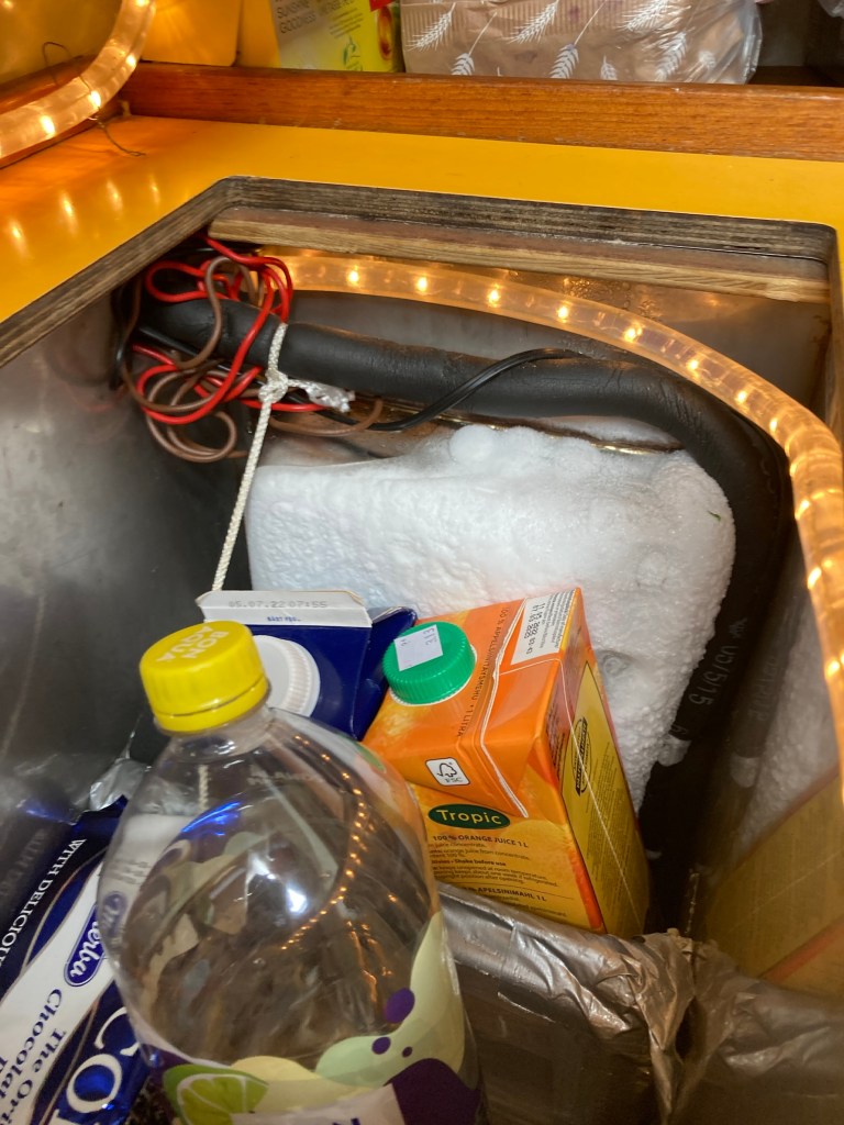 Nya (nu 5 år gamla) kylen, som kan skjutas in i stickkojen.