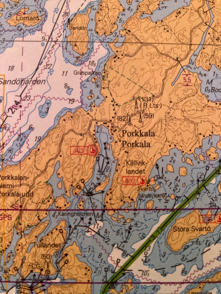 Återigen blåste det alldeles för lite för att segla vid start. Sjöbrisen kom ganska sent, vid 12:30, och då var farleden för trång och hamnen bara en timme bort.