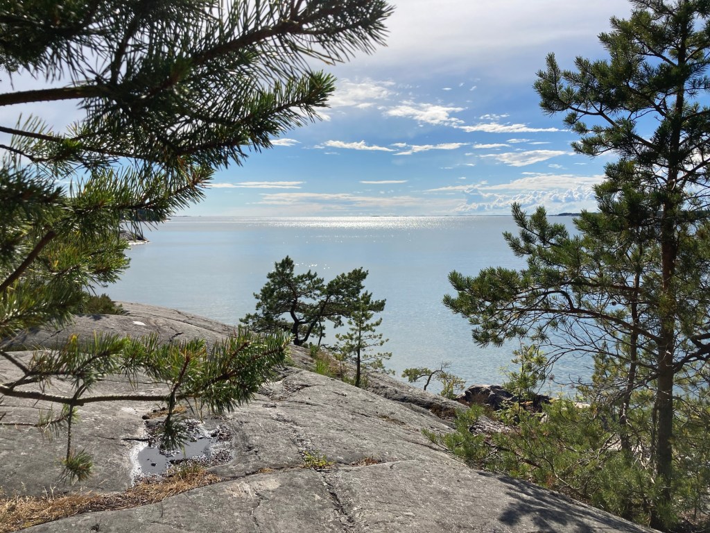 Efter lite sen lunch gick vi en promenad. Det visade sig finnas ett friluftsområde bara 30 minuter bort. Där hittade vi en fin utsikt över det hav, som vi bara ett par timmar tidigare åkt båt över…