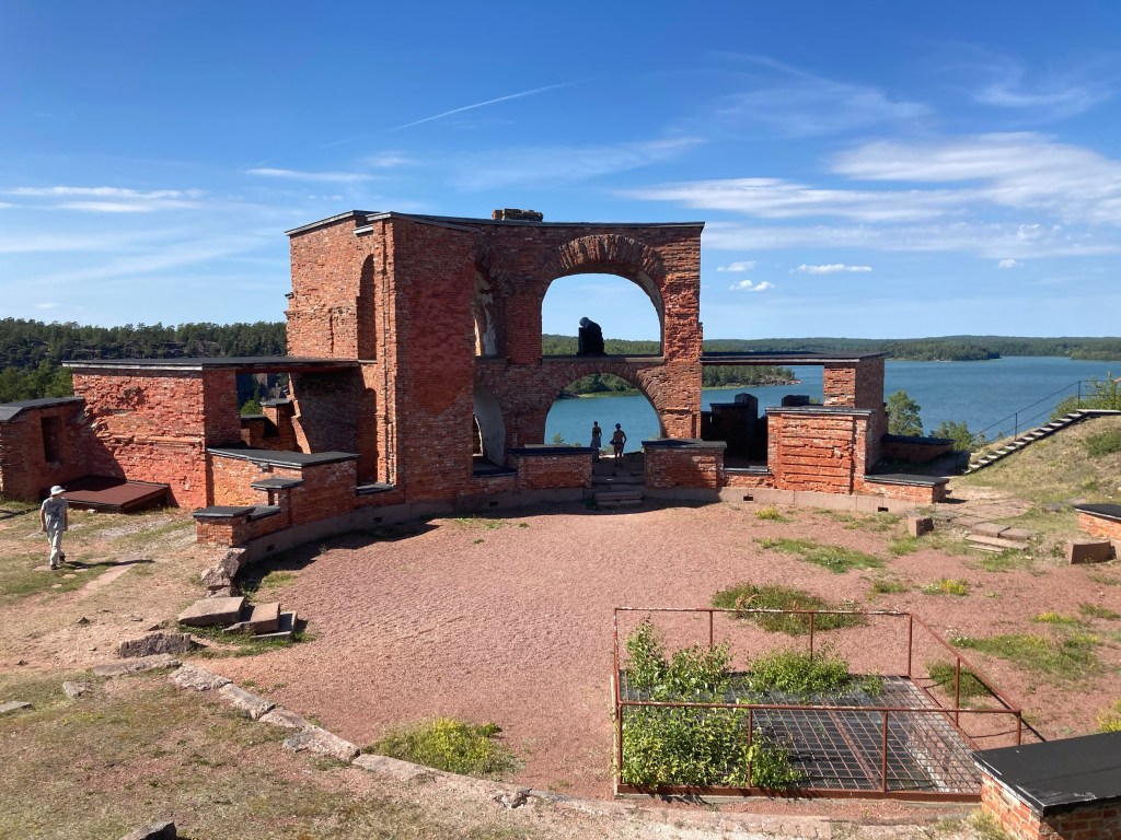 Väl på plats i gästhamnen – ny brygga med ny el och vatten – tog vi en promenad upp till hsmnkontoret. Därefter blev det rundtur bland ruinerna av ryssarnas pampiga skrytbygge Bomarsund.