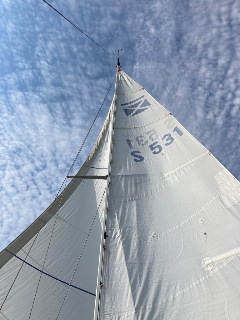 Vi hissade seglen så snart vi kommit ut på öppet vatten. Vi hade slör och det gick undan ordentligt med vindar mellan 6 o 8 m/s.