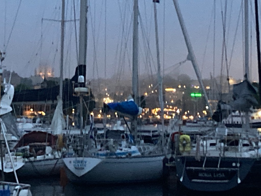 Det har blivit betydligt kallare i kväll och den sydvästliga vinden har vridit till nord. Nu ser man knappt övre delen av Gröna Lunds åkattraktioner pga dimman.
